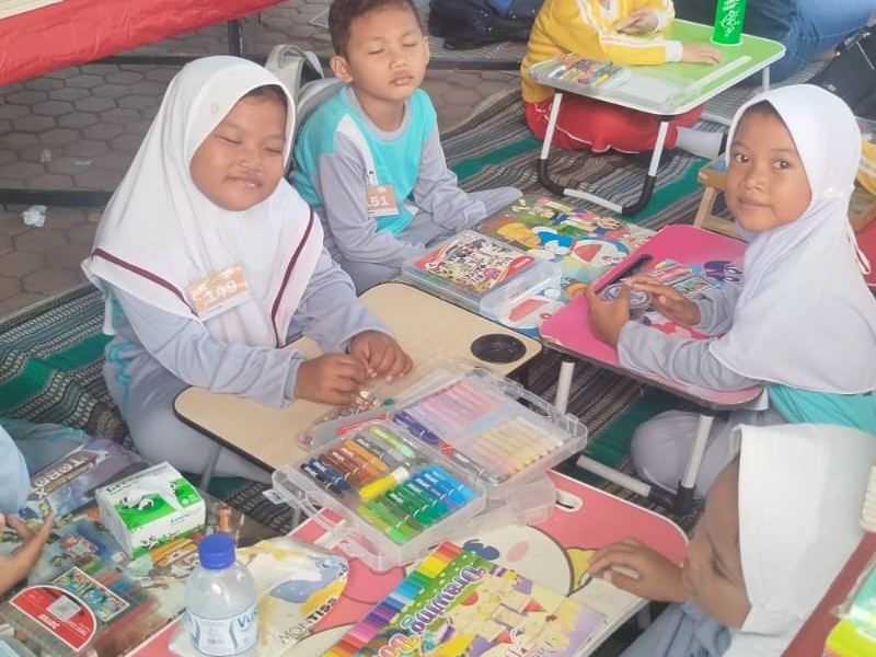 Para peserta tampak antusias dan bersemangat dalam menuangkan ide-ide kreatif mereka ke dalam gambar. Dengan berbagai warna cerah, karya anak-anak terlihat indah dan penuh makna.